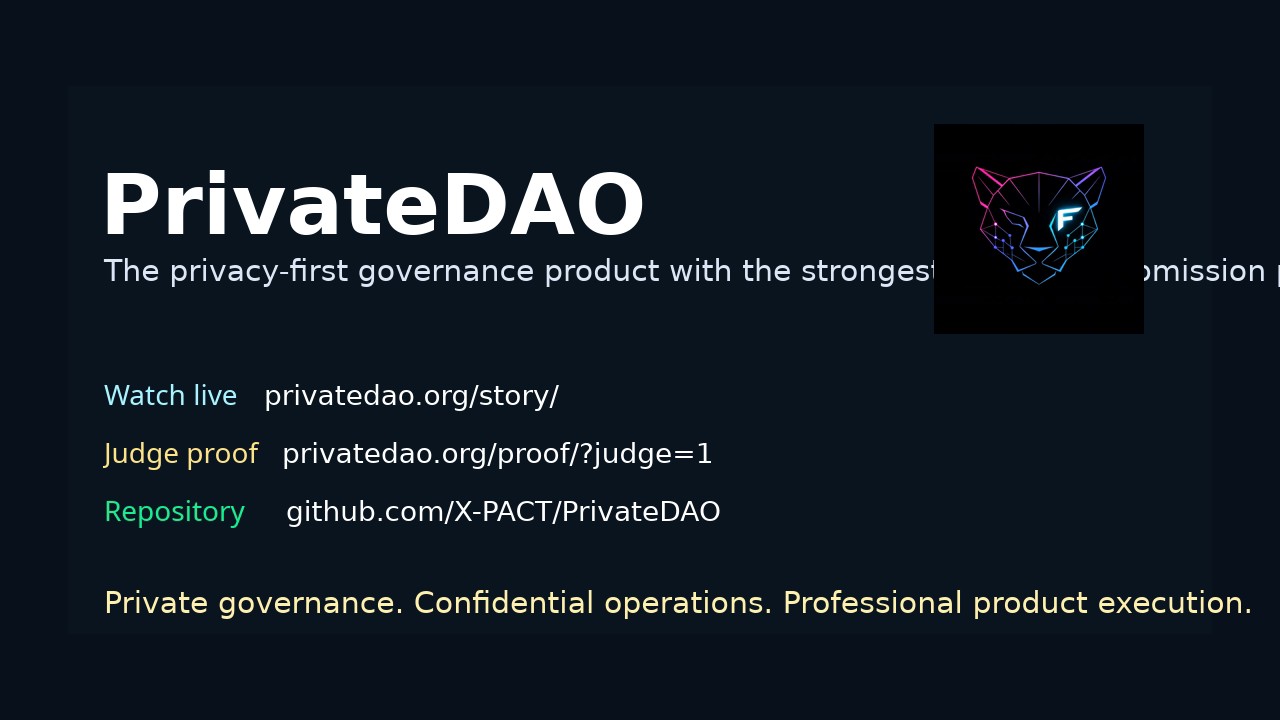 Confidential governance corridor for private voting, encrypted operations, and reviewer-safe proof.
